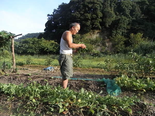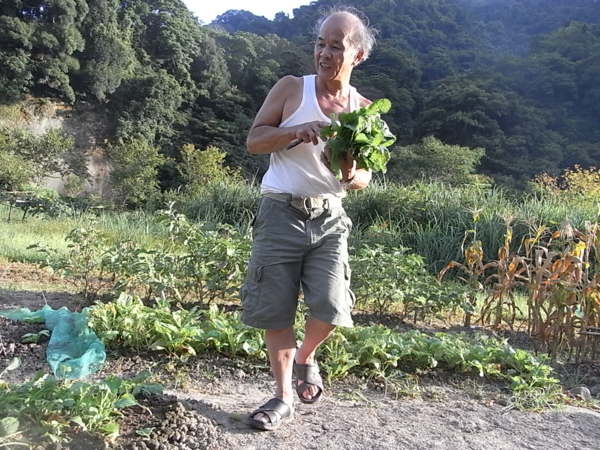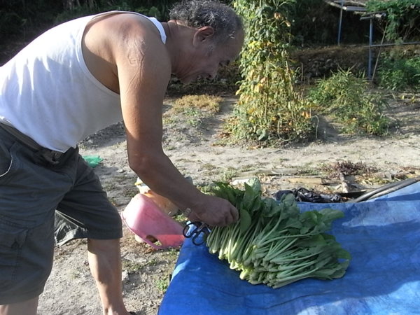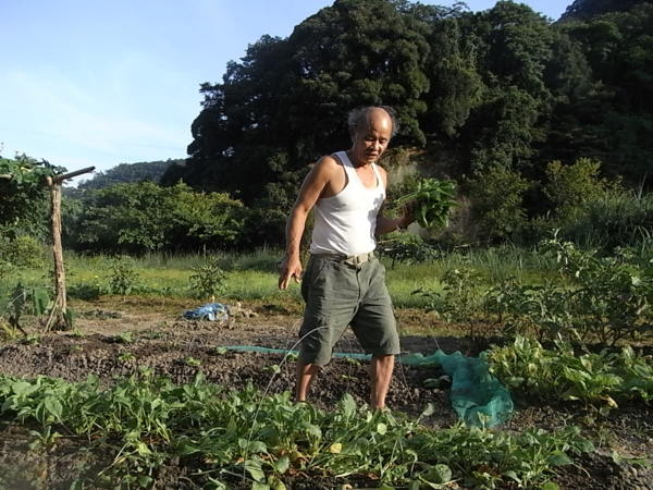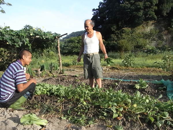 休耕政策數十年後水田幾乎都成旱地,尤其是丘陵地的梯田更是徹底。客家人勤儉早年搶河灘地種菜現今概皆在休耕的梯田間種蔬菜,祥叔年輕時向俺爹租地種稻,現在還是不改務農本色,瞧他滿足採收葉菜的笑容真幸福呀!