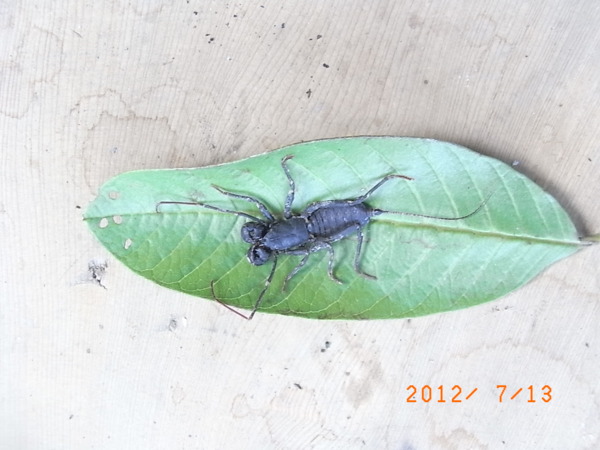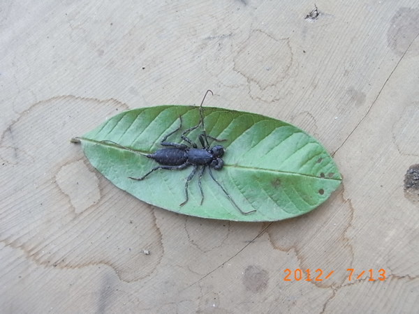 這個模樣駭人的小東西叫台灣鞭蠍,雖然無毒但是遇逢急難時會釋放一種酸臭的氣體刺鼻難聞,俺小時候好奇抓來把玩過滿手的酸臭味好幾日搓洗不乾淨,警戒時尾鞭高翹頗似雷達車所以也稱為雷達蠍。山寨公社四周挺多滴!