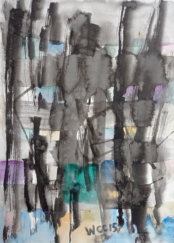2015年書畫畫室即興之作,後來2024年在網路找到格哈德.李希特的作品,比對出來的結果,我的這張4K水彩畫就是水墨版的李希特作品,輕快明亮,沒有壓克力的沉重。