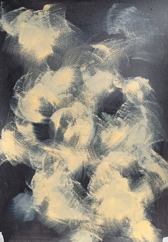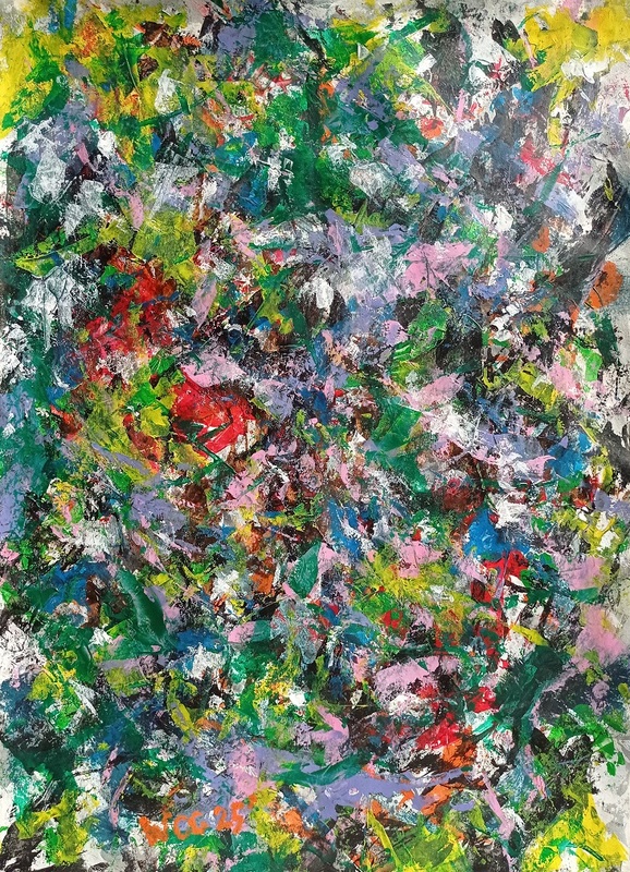 2025年新作品-壓克力、4K素描紙。 回歸十一年前水墨畫室風格,這是別人打下的基礎, 從這裡再重新出發,內裡彷彿有一個檔案庫,下意識 的塗鴉可以重現出來,這真的太神奇!