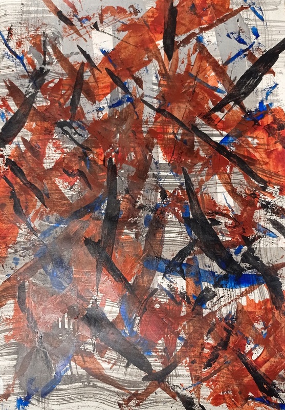 繪畫作品:壓克力、1#畫布。 從層層壓縮到大爆發 無法相信人可以經歷 兩種極端生態 我相信心念 更相信物理 配合慣性 一再重複著錯誤 看來是大徹破 之後的大迷失 然後嗄然而止 現在任憑誰都無法左右 自...