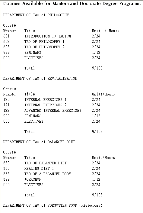 再看一下該「大學」所開的課程,每一個「系」只有聊聊五到八門課.有這種系?這也是奇觀.這些「系」根本就可以合併,卻搞那麼多個,大概是為了充面子,表示系很多,故胡亂灌水,騙騙沒見過世面的人.