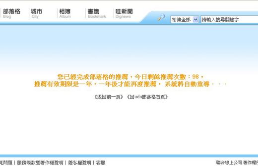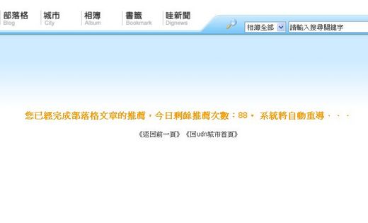 「推薦完畢」四字即可.為什麼要嘍哩嘍嗦,用什麼「您已經完成部落格文章的推薦」?是不是幼稚園學生在學說話,練習咬字發音?