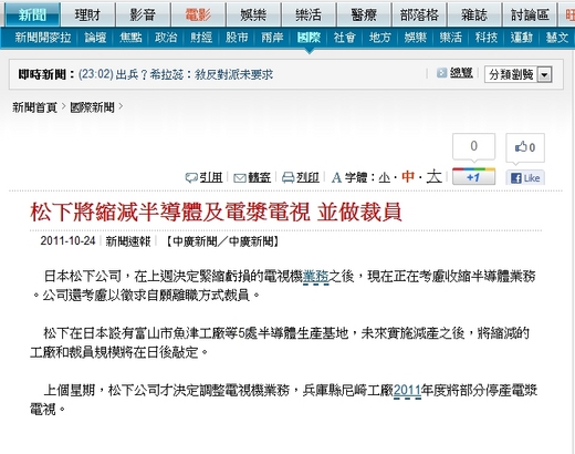 「縮減半導體及電漿電視」???是半導體及電漿電視體積減小嗎?或是減產?