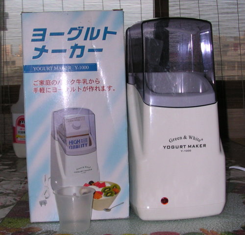 這是我家的優格製造機,裡面附有一個小杯子,用來量菌種的,可是我都用市售優酪乳做,那個小杯子就用不到
