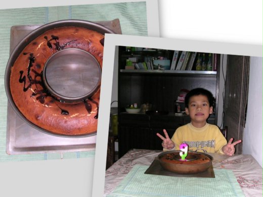我們開開心心為老二唱生日快樂歌,切蛋糕吃,現烤的蛋糕又香又美味,大家吃的津津有味,老大居然語出驚人的說:媽媽,我生日時,你做乳酪蛋糕給我吃![]()
