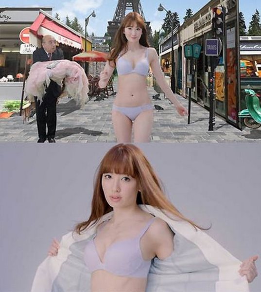 她在廣告中穿上淺色系內衣褲大秀豐滿D奶,還大秀性感的美腿。就有日本的電視雜誌編輯透露:「這個廣告的目的其實包括不會直接購買內衣的男性觀眾,光是在網路上兩天的點擊率已經超過24萬次,應該歸功於她的男粉絲。」