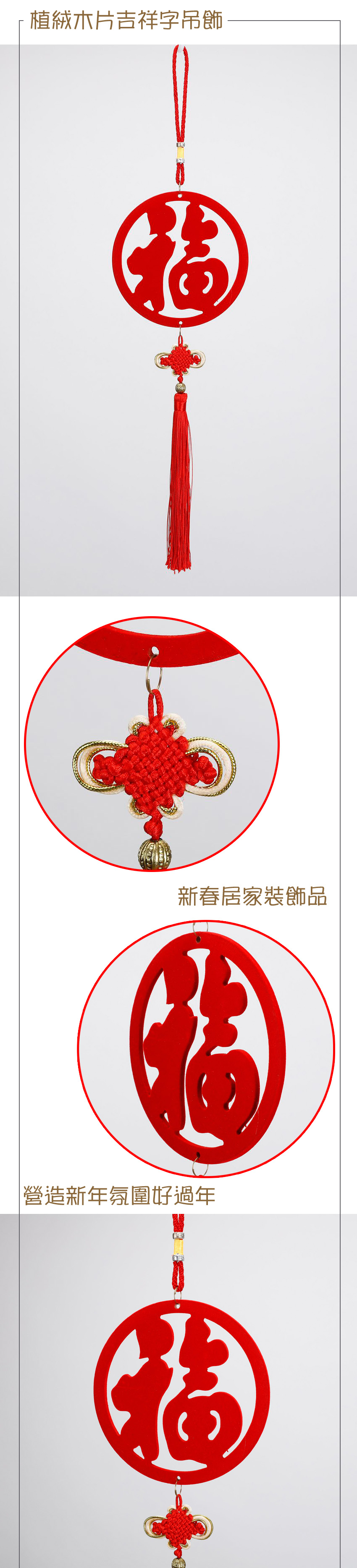 要選對新年裝飾品,布置年節氣氛是很重要的!這款【植絨木片吉祥字吊飾】造型具有濃濃中國風味,增加年節新氣象,開心過好年又福氣。