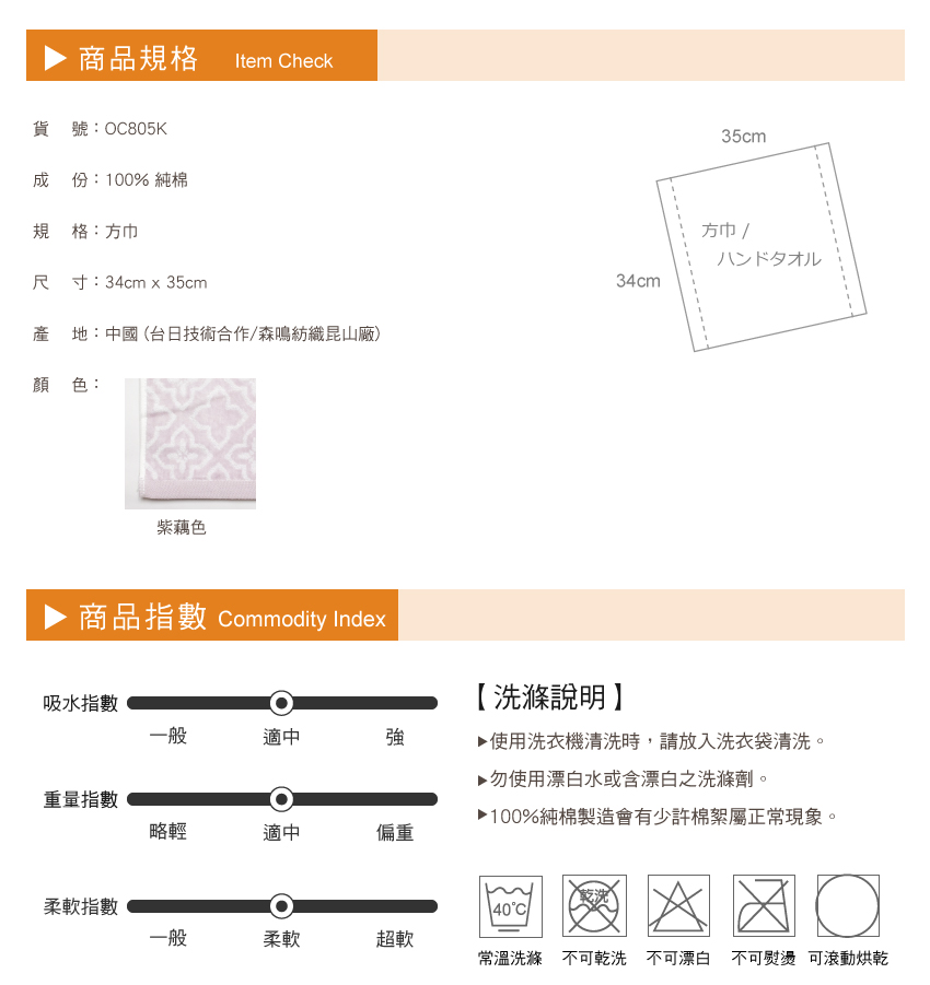 - 一般方巾使用