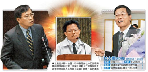 林秋東難以招架,最後竟吐出:「願主耶穌賜你們平安」。但杜文卿仍不放過,要關稅總局長俞邵武「還他公道」,接著還罵:「幹,我這立法委員做得這麼沒尊嚴」。離開備詢台之後的俞邵武,忍不住潸然淚下。(我想林秋東不敢講主耶穌恕你無罪)