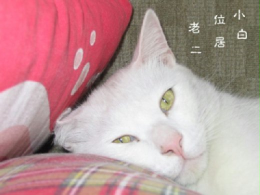 豆豆痊癒後可就發威了,牠是家中老大,阿扁和小白都得讓著他,譬如牠要獨自一個坐窗口賞景,跳上窗前矮櫃怒吼一聲,揮揮手,阿扁與小白就只有摸摸鼻子乖乖離開的份兒;如果我放盤食物餵小白,豆豆來了,小白立刻自動讓給老大先嘗。