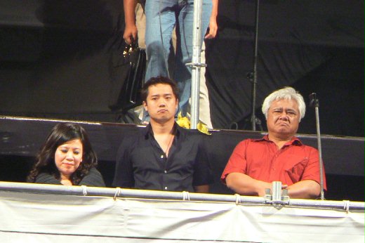 十月九號再度北上應倒扁總部之邀,原本要上台表演數來寶的,但搶著要表演的很多,有些混亂,不久,陳文茜來了,緊接著來了許多名嘴民代,我好奇的靜坐後台一角觀察這些人物,這時一位負責紀律的義工來趕我們,還狐假虎威說: 他會轉告主持人,我們的節目免了,所以我們可以先走了.小說裡的看門小人就這樣活生生 的立在你面前.