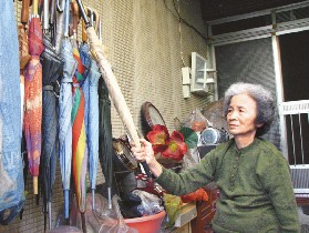 張運妹只要看到有人丟棄的雨傘,一定撿起來慢慢修理,傘骨斷的,她就「兩三支併做一支」,拆別支雨傘的來換,傘布破洞,有時1針1針的縫補,破洞太大時,「一樣兩張布併做一張」。