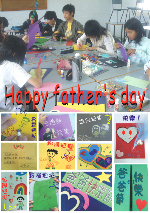 慈濟人文學校這種有關爸爸、媽媽的節日裡,一定不會忘記提醒孩子們:太陽光大、父母恩大......的重要性!今年當然也不例外,五月份母親節的時候,我們舉辦了感恩媽媽的禮品義賣活動、作文比賽、卡片設計比賽.....現在!輪到了慶祝父親節的時候了~