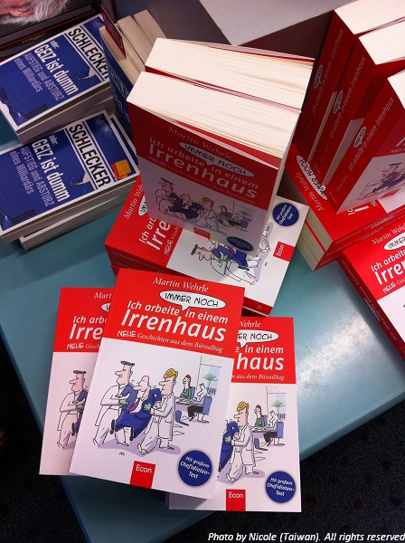 住了一段時間,其實我也有點懂了德國人-或者我該說是巴伐利亞一帶的德國人-的幽默是那種會心一笑型的。至於逛書局這天,照片中這本有著漫畫書皮的書讓我非常的想帶回家慢慢看。書名說的是「我總是在一間不對的公司工作」,讓在職場也歷練14年時間的我想看看書上是怎麼描寫這些職場生態以及感受。