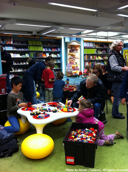 在學齡兒童這層樓有個角落是玩具教具區,這裏擺了幾張給小朋友與家長坐的矮桌椅,小朋友可以在這邊玩書店提供的玩具,還有大把的樂高,讓大家發揮自己的想像力。