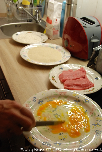 因為沒有槌肉器,所以老德用手指打,其實彼此也都知道無濟於事,但他打得開心就好。不過大概下次逛超市時會買入一支槌肉器吧。