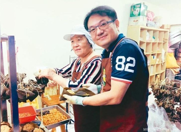 他從小就愛媽媽包的肉粽,每次把粽子帶到學校當午餐,總是被同學搶食。