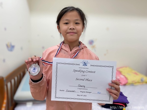 「前幾天,老師把演講比賽的獎牌放在一樓,我才知道原來得獎可以拿獎牌耶,獎牌好漂亮,我想要獎牌。」她開始開心規劃,得獎後獎牌要放哪裡。