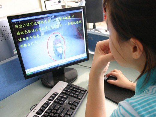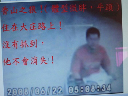 自己從監視器畫面翻拍色郎身影,透過網路傳遞,提醒他人注意,同