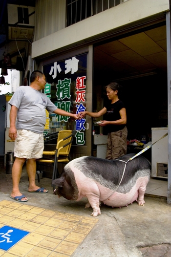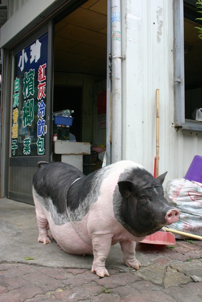 迷你豬可以養到百來台斤, 那普通豬不是可以養成神豬. 我返台時在淡水檳榔攤也看過這麼一隻, 還幫它照相. 也蠻"迷你"滴.