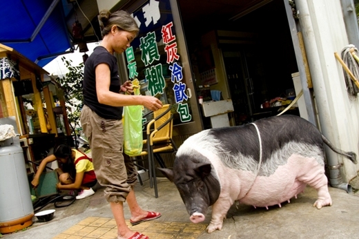 會掙脫繩索偷跑,其他店家看到了,會在大街上大喊「你的豬跑掉了