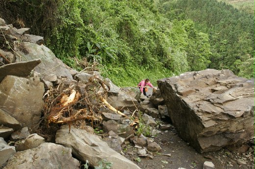 前天全台下起豪大雨,新竹縣五峰山區落石崩落,有上百名遊客受困,野溪暴漲的結果,造成便橋被衝斷,連消防隊員都不敢冒然通過。因為職責所在,前天凌晨四時,小記者就衝上山,跨過深度及腰的暴漲野溪,走山路、攀爬掉落的落石去採訪,現在的我,雖然已經睡了一覺,還是覺得好累、好累,先貼幾張圖上來,過幾天再貼這段歷險記上來跟大家分享。
