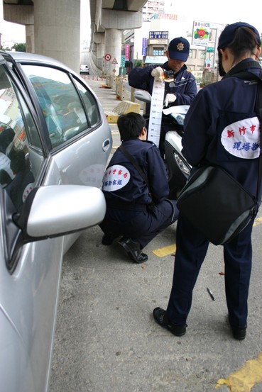 識課在測量「開門」如何撞到機車,前後又花了一個半小時;今天又