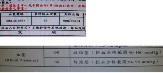 今天又到了兩個月的一期一會捐血日!我趁著傍晚發稿空檔跑去捐血,一開始驗血時,血球一直沉不下去,後來檢驗才通過;一量血壓,雖在正常範圍卻偏低(有次在警局量血壓,我的高血壓是95,低血壓是59,嚇壞大家),不過,這都還能順利捐血