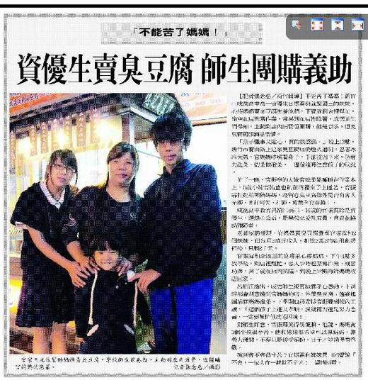 媽辛苦,傍晚4點多放學後放棄與同學玩樂機會,立刻到臭豆腐店幫