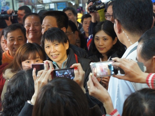 要抱抱、要簽名、要握手,我一路墊腳拿高相機拍照,有時跟店家借