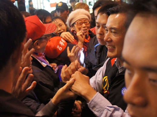 程一直線,但馬英九一現身,大家又瘋了。我前方擠著電視台、粉絲