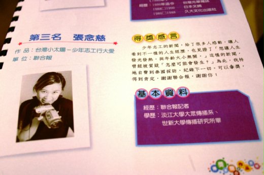「少年志工行大愛」獲報導獎第三名、陳柏亨「又一村的故事」獲攝