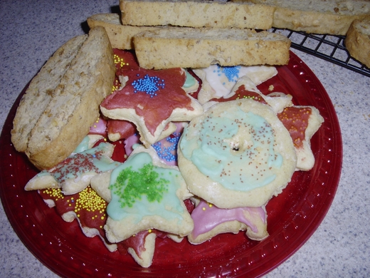 吃聖誕手工餅乾時, 濃濃的奶油香, 和淡淡的雞蛋香,好吃的 不得了! 我們家的糖霜 是無比杏仁糖霜! 雖然我家的餅乾不是最漂亮的, 但是很好吃!