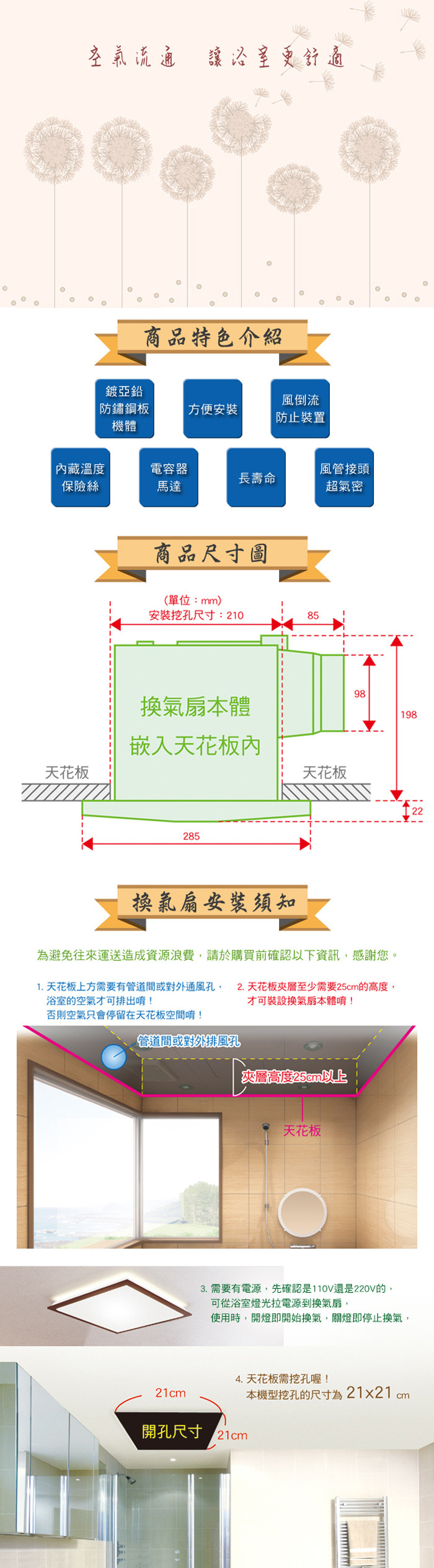- ◆品名:Panasonic 浴室換氣扇 21CV2W