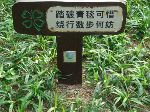 "柔性勸導"真的挺人性的,其實帶著孩子看標語,也是一種很好的"學習",只怕錯誤示範,曾親眼看過標語"請勿踐踏草皮",而媽媽還要孩子進入拍照,哇咧!三條線........