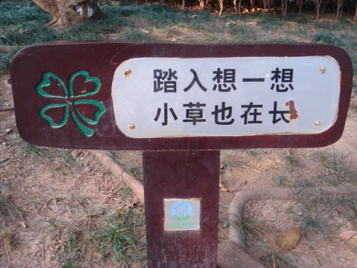 以前在公園的草地上常會看到 "請勿踐踏" 的告示牌,