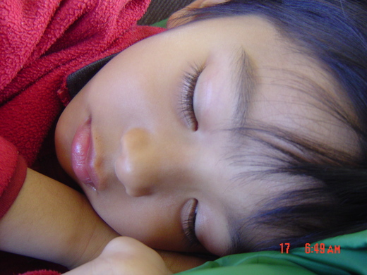 " 我就閉緊眼睛 ... 趕快睡著 ... " ( 沒錯...兒子幾乎都在三分鐘內入睡 )