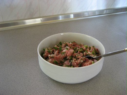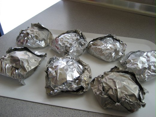 把A,B,C,混在一起,做成肉圓,在壓一下變成扁圓型.在放到裁好的鋁泊紙上,