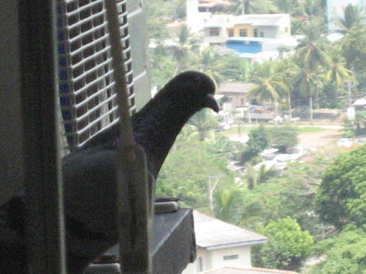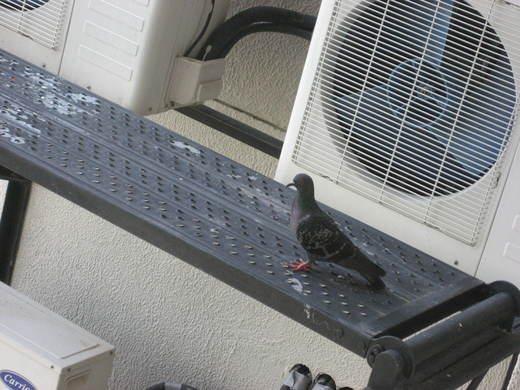 照片--鴿子每年都帶老婆來生產(在我們公寓後面的冷氣機旁),是不是意味著倦鳥要歸巢呢????