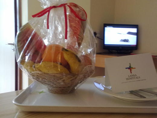 小護士說: 醫院的CEO 送來水果籃, 好友也送來花藍, 不過花藍我們實在無法帶回家, 所以我們就放到小護士櫃台前,增加美觀.