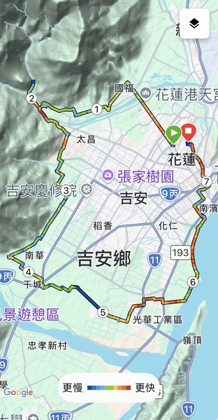 📍 路線:花蓮市區 → 吉安鄉 → 水源村 → 光華工業區 → 南濱 → 返回