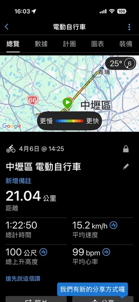 電動自行車的助力踩起來輕盈,去程順著地勢滑向低處,心率壓在九十幾下,不快不慢,剛好是那種「還能欣賞風景」的節奏。