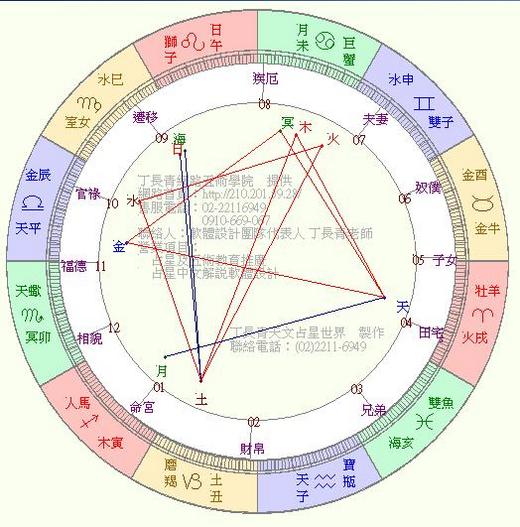 以上是股神巴菲特的星盤,大家可以看到他的星盤紅色凶線大於藍色吉線,但是他仍是股神,為什麼?凶多吉少的他命運卻可以在現實世界中得到股神的成就與財富?別忘了!我上篇文章所強調的是[後天上帝就是你自己],此道理可以套用在股神巴菲特的星盤上,因為巴菲特他懂得運用自己星盤中的藍色吉線星體,懂得依照星盤中藍色吉相位的含義去努力實踐,所以讓巴菲特有如今股神的稱號,功勞都是靠他運用自己正面的力量。
