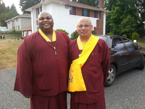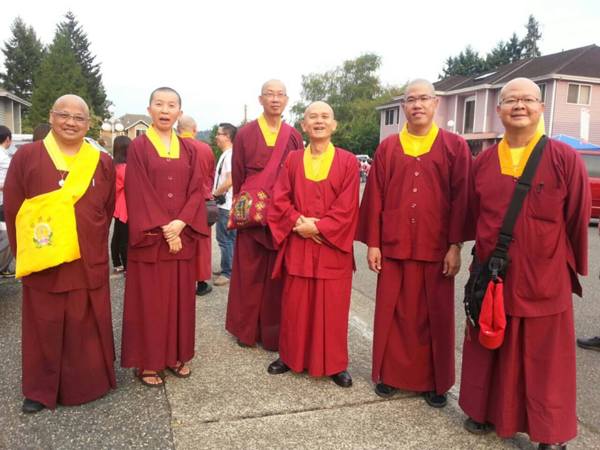 而大馬密總諸位上師、法師、同門們齊聚西雅圖雷藏寺前,