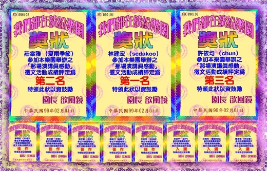 恭喜以上得獎者能獲得獎狀乙紙、獎品精選好書乙本、得獎作品集乙本。所有獎狀、獎品、得獎作品集將於