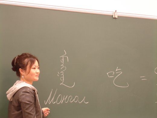 小巴來台灣五年,來了才開始學國語。她是第一梯來台灣十位學生的其中一位,十分優秀。在她一個一個詞唸完之後,甚至請我們從頭一起跟她各詞唸兩遍,儼然是堂蒙古語課。但大家更好奇的,其實是她會不會騎馬、那邊天氣如何、蒙古烤肉是烤什麼、蒙古包怎麼回事、坐飛機要多少錢要多久……諸如此類的問題。