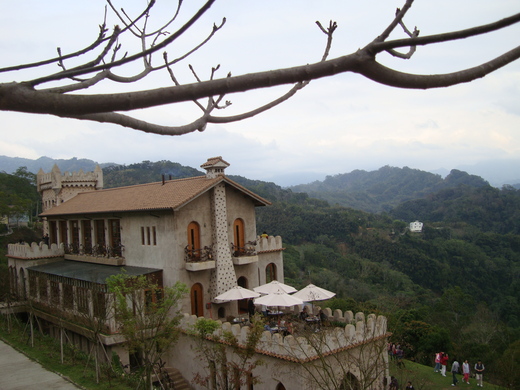新的世界?天空「新」城為我們大開眼界,鯉魚潭水庫的某座山上何時蓋了座城堡?苗五二之三是一條奇怪的山路(其實在南投走久了山路,一點也不覺得奇怪了),單行道的關係,入口處便有工作人員指揮。上了山之後,竟然看到一排車子與一群遊客。沒想到,知道天空之城的人那麼多。看來,就算要跳下鯉魚潭水庫也洗不清我們的愚昧孤陋寡聞了(但我相信有更多的人不知道)。