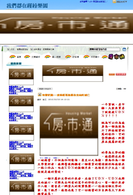 想來想去,覺得好笑,亦覺得難過。我認為可以作為我終身發表之平台,竟開始出現了敗亡之跡。身為一個無能為力的寫手,只能背後無聲抗議,我們畢竟贏不了那些現實的利益關係。再多的作家寫手群聚,寫出一篇篇的佳作,它的力量卻是微薄的。想來想去,覺得好笑,亦覺得難過。那團結的力量,輸給了區區一個廣告標誌,放在原本應屬於乾淨文學的場域裡。UDN,原來也淪陷了。