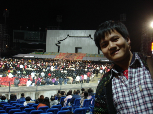免費地接駁車把所有的人載到了洲際棒球場,擠滿了人,也擠滿了接駁車。我數不清楚來了多少的人,甚至連臺上有多少人演出也數不清楚。這裡是皇宮,一切如此大而華麗,我多麼渺小。